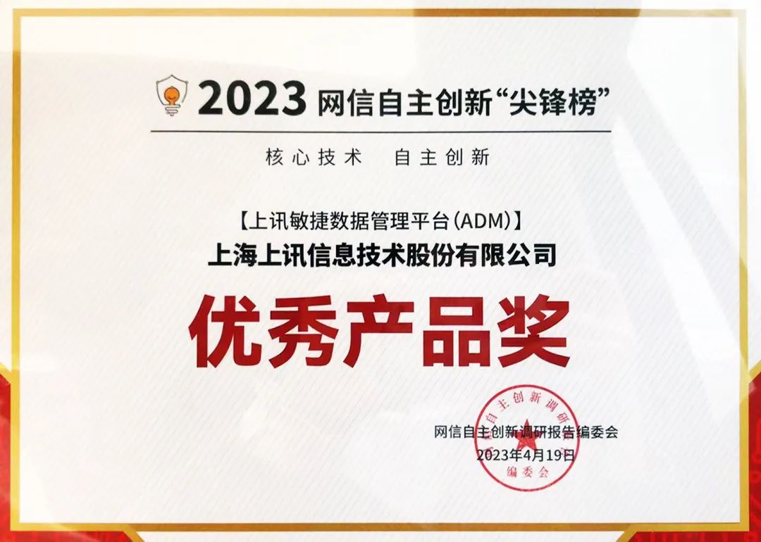 4月19日,由網(wǎng)信自主創(chuàng)新調(diào)研報告編委會主辦的“第六屆關(guān)鍵信息基礎(chǔ)設(shè)施自主安全創(chuàng)新論壇-暨紀(jì)念習(xí)近平總書記‘4.19’講話發(fā)表七周年活動”在京順利召開。會上正式發(fā)布了“2023網(wǎng)信自主創(chuàng)新尖鋒榜”,上訊信息敏捷數(shù)據(jù)管理平臺(ADM)獲評“優(yōu)秀產(chǎn)品獎”。
