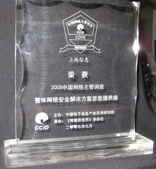 歷時(shí)三個(gè)多月、十個(gè)城市的 2009中國網(wǎng)絡(luò)主管論壇于八月份勝利落下了帷幕,此次網(wǎng)絡(luò)主管論壇活動(dòng)吸引了全國三千多名企事業(yè)單位的網(wǎng)絡(luò)主管參與,取得了巨大的成功。《網(wǎng)管員世界》雜志社根據(jù)在此次論壇活動(dòng)中收集的數(shù)千張調(diào)查問卷,最終評選出了“2009中國網(wǎng)絡(luò)主管論壇”獲獎(jiǎng)的眾多廠商,上訊信息在此次活動(dòng)中榮獲“網(wǎng)絡(luò)安全解決方案首選提供商”獎(jiǎng)項(xiàng)。