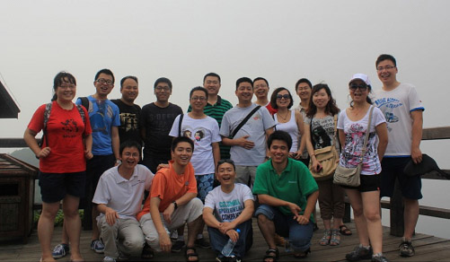 在結(jié)束了緊張嚴(yán)肅的會(huì)議后,東一大區(qū)一行人登上了前往天目湖景區(qū)的大巴,面對(duì)即將展開的Teambuilding之旅,每個(gè)人都精神抖擻,斗志昂揚(yáng),想到要與大自然做親密接觸,興奮的感覺溢滿心頭。該景區(qū)將自然和人文景觀相結(jié)合:湖里山、鄉(xiāng)村田園島、海洋世界、繡球島——品味天目湖"茶香水甜"之絕佳處。來(lái)到南山竹海,南山壽翁正笑咪咪的歡迎大家的到來(lái)。這里的生態(tài)環(huán)境宜人,山水相映成趣,風(fēng)景如詩(shī)如畫,方圓幾十里無(wú)一絲污染,是蘇浙皖邊界最佳生態(tài)圈,有是雞鳴三省之稱。在這個(gè)清涼的周末,參觀了萬(wàn)畝竹海、密林靜湖、小鳥天堂、走古官道、拜壽堂、吳越第一峰,既感受到了古樸、原始、自然的意境,感受到了旅途中的新奇和快樂(lè),也品嘗到了當(dāng)?shù)剞r(nóng)家的佳肴美味。