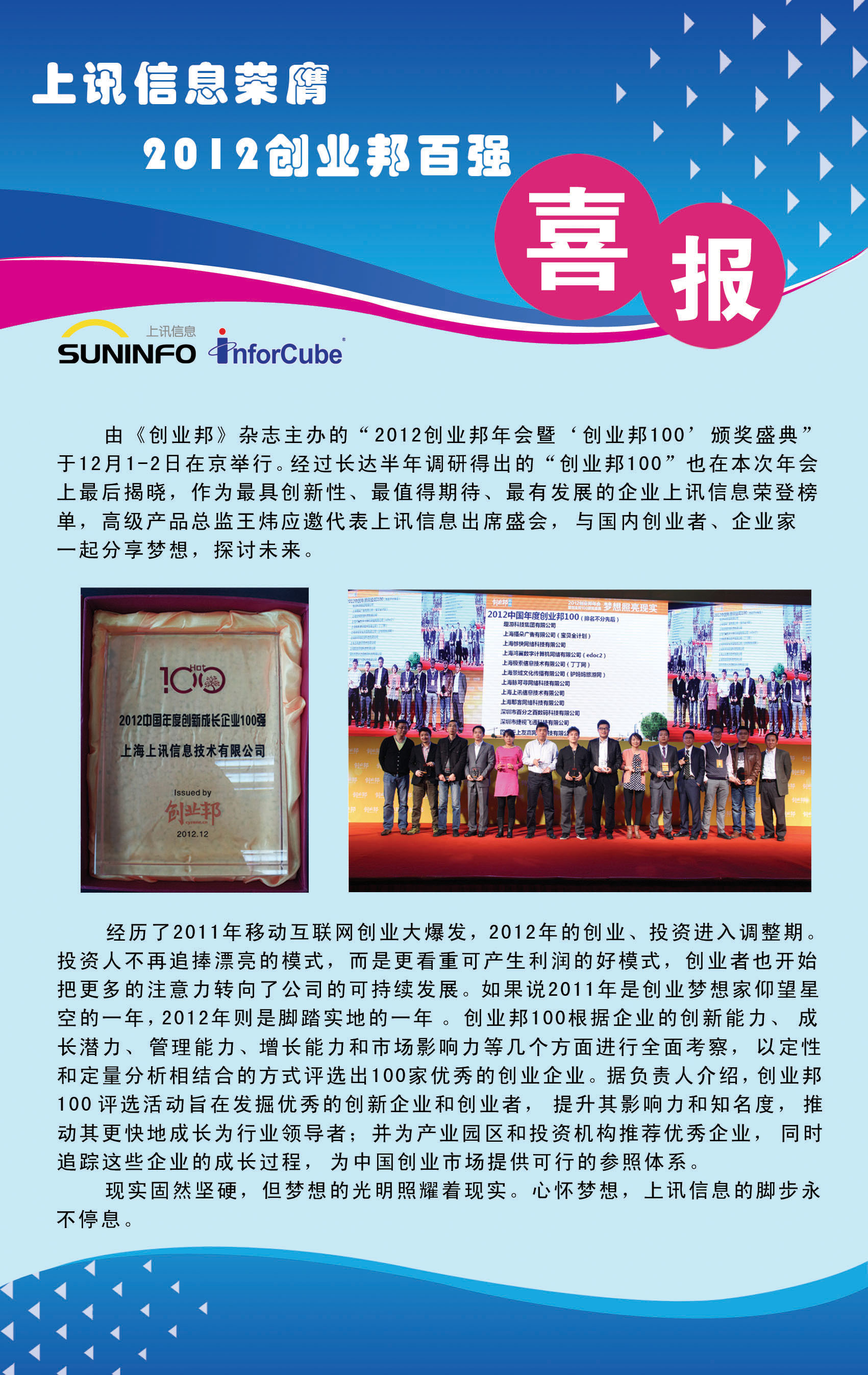 上訊信息榮膺2012創(chuàng)業(yè)邦百強(qiáng)!