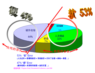 很多用戶還存在這樣一種誤解:既然業(yè)務系統(tǒng)已經(jīng)是“雙機熱備份”了,而存儲中的數(shù)據(jù)也有了raid保護,那么數(shù)據(jù)就不需要再進行單獨備份了。正因為有這樣的誤解存在,很多用戶往往忽視了數(shù)據(jù)備份的重要性,整個系統(tǒng)只有磁盤陣列中的一份數(shù)據(jù),一旦磁盤陣列發(fā)生故障,導致數(shù)據(jù)丟失的時候,才發(fā)現(xiàn)悔之晚矣!