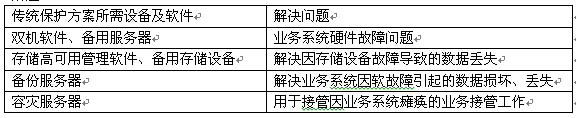 對業(yè)務系統(tǒng)的全面保護,傳統(tǒng)的做法需要疊加多種解決方案,形成一套完整的方案,如下表所述:
