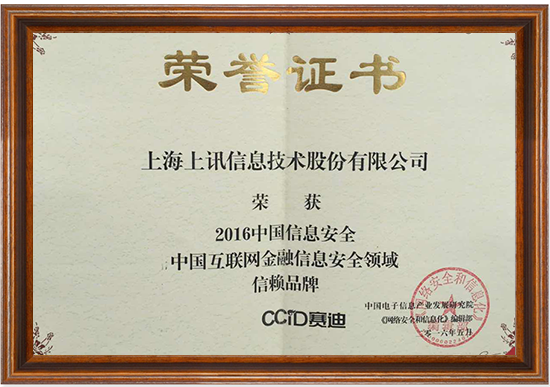 會上,上訊信息憑借優(yōu)質(zhì)的產(chǎn)品、強大的技術(shù)實力與豐富的行業(yè)經(jīng)驗和良好口碑,實至名歸,榮獲“2016年度中國互聯(lián)網(wǎng)金融信息安全領(lǐng)域信賴品牌”獎。