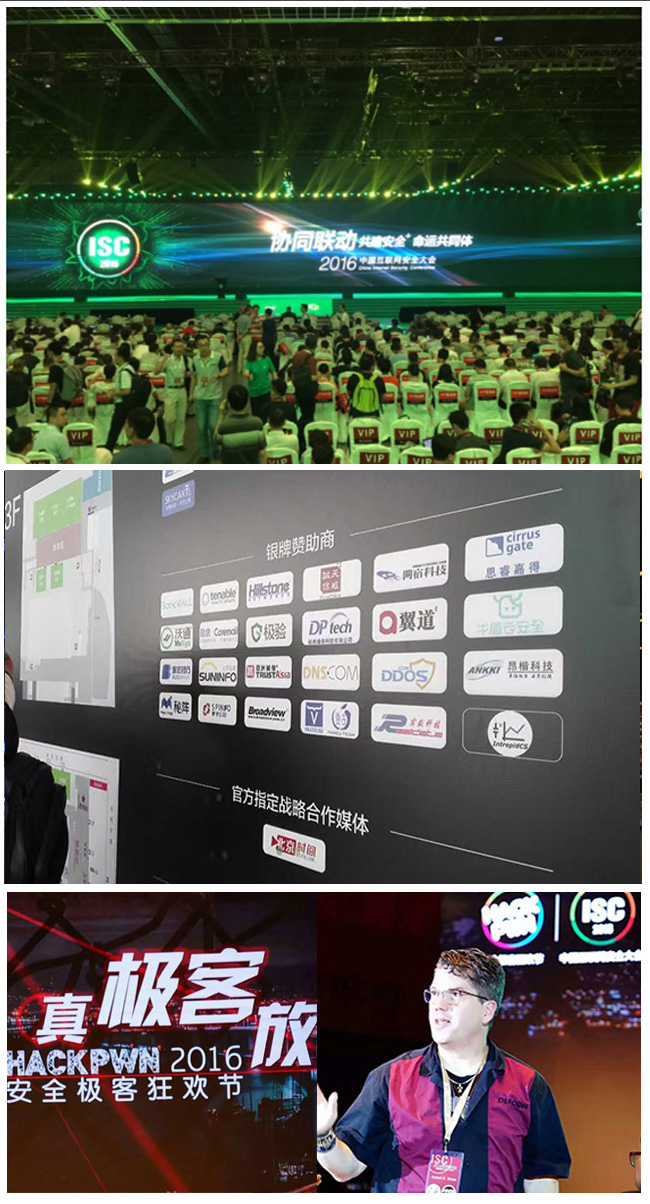 8月16日-17日,備受矚目的第四屆中國互聯(lián)網(wǎng)安全大會(ISC 2016)于北京國家會議中心盛大召開,中央網(wǎng)信辦網(wǎng)絡(luò)安全協(xié)調(diào)局副局長楊春燕、工信部網(wǎng)絡(luò)安全管理局局長趙志國、公安部網(wǎng)絡(luò)安全保衛(wèi)局副局長鐘忠、ISC名譽(yù)主席中國工程院院士鄔賀銓分別為大會致辭。來自全球70多家網(wǎng)絡(luò)安全相關(guān)機(jī)構(gòu)和企業(yè)的超過百位智庫和專家參會, 3萬多行業(yè)精英共同見證全球頂尖年度互聯(lián)網(wǎng)安全大會開幕。上訊信息作為業(yè)內(nèi)優(yōu)秀企業(yè)代表亮相,“協(xié)同聯(lián)動,共建安全+命運(yùn)共同體”。
