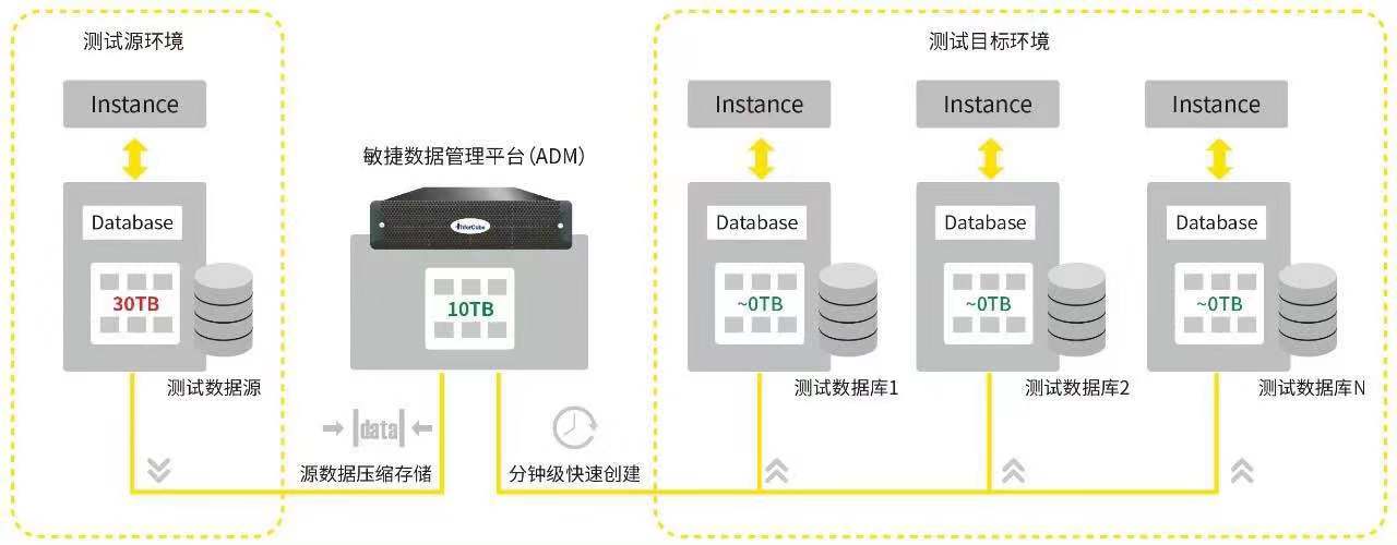 通過數(shù)據(jù)庫虛擬化技術(shù)對原始數(shù)據(jù)庫進(jìn)行分鐘級的虛擬庫創(chuàng)建,秒級交付。