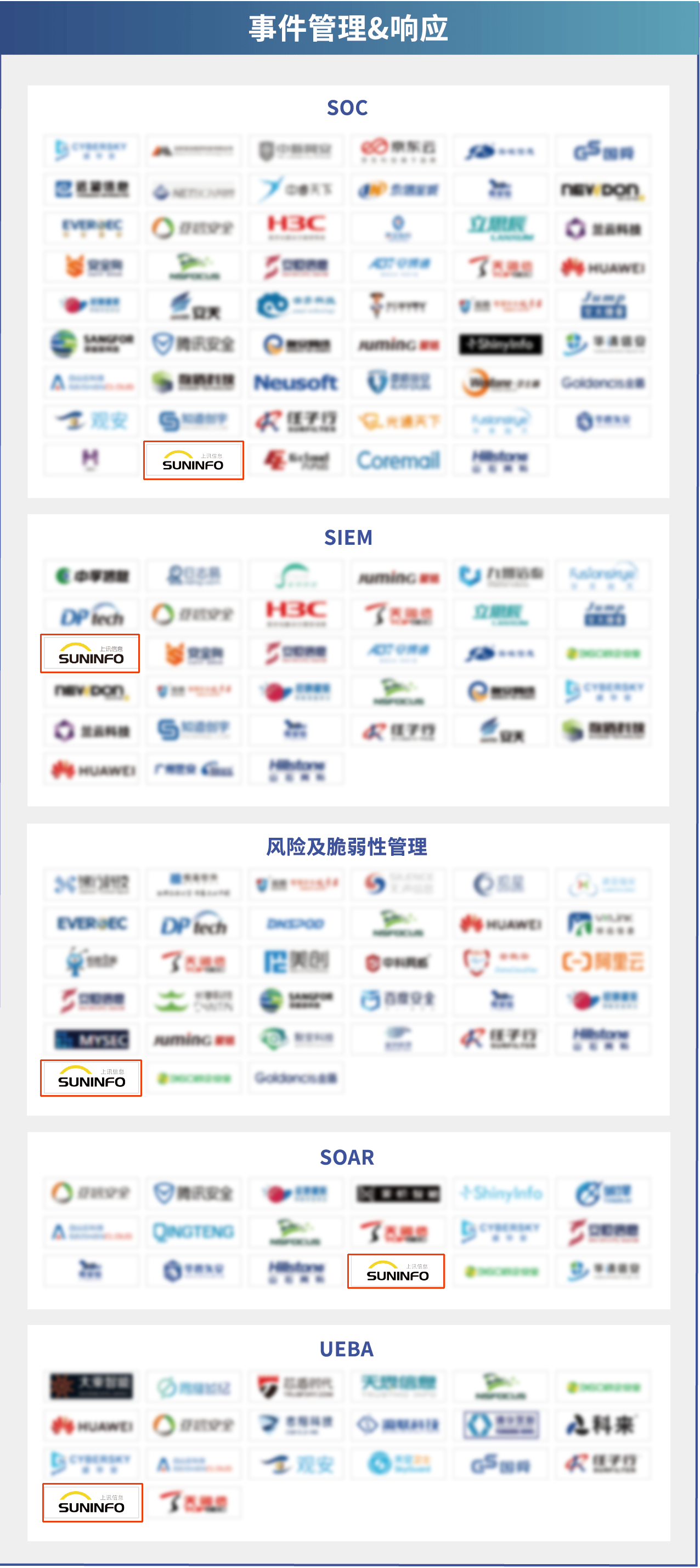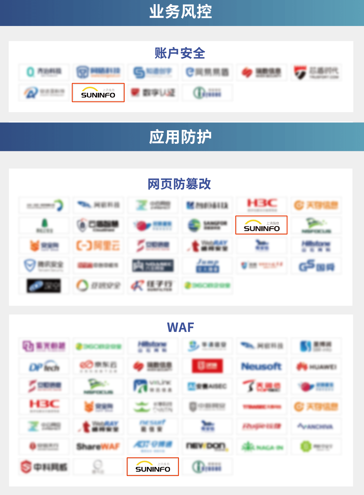數(shù)據(jù)安全、業(yè)務(wù)風(fēng)控、應(yīng)用防護(hù)、內(nèi)容安全、身份識(shí)別與訪問(wèn)管理、邊界訪問(wèn)控制、計(jì)算機(jī)環(huán)境安全、安全服務(wù)、威脅檢測(cè)與捕獲、安全情報(bào)、事件管理&響應(yīng)、物聯(lián)網(wǎng)安全、工控安全、移動(dòng)安全。