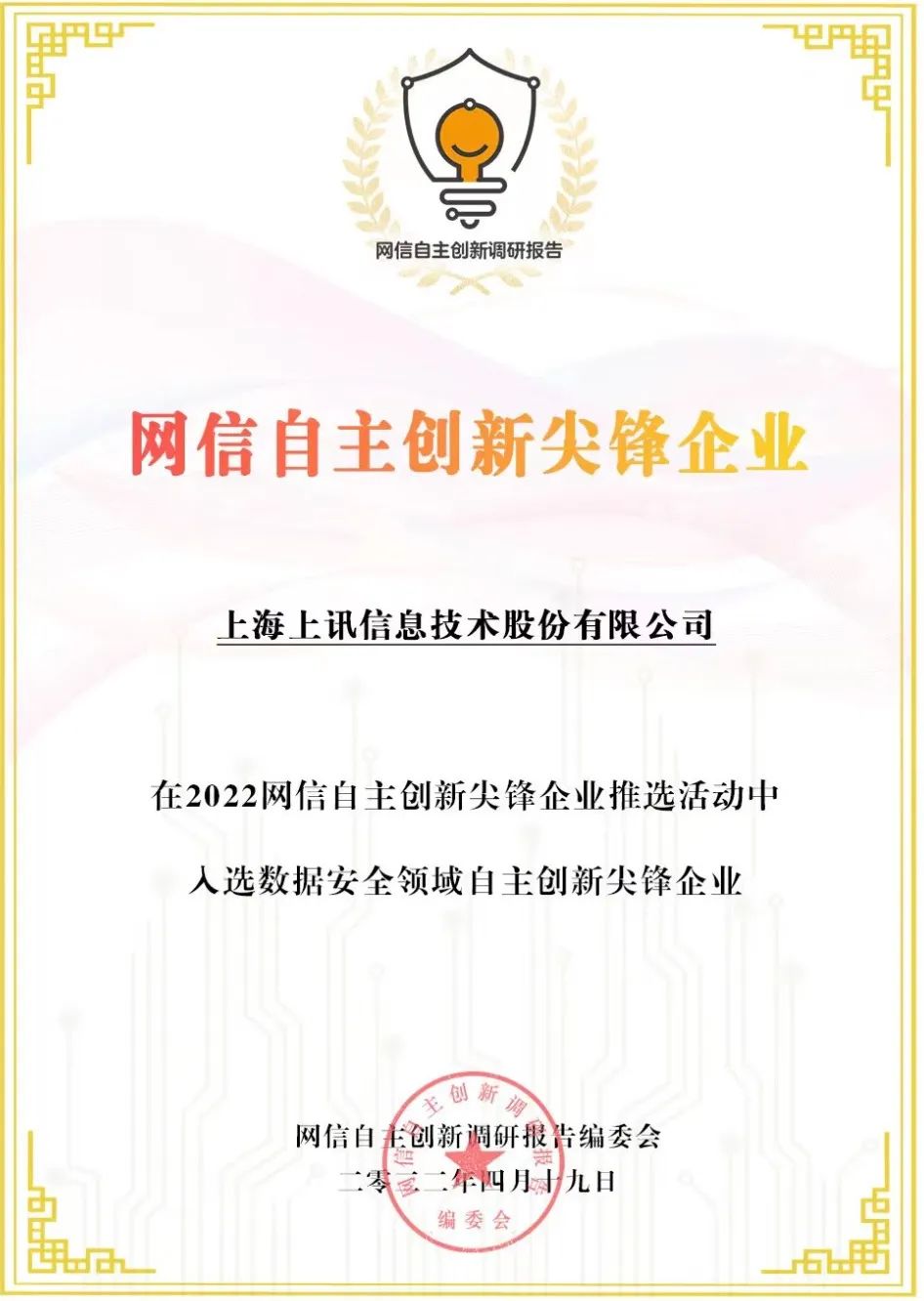 感謝編委會對我司及相關(guān)同事工作的高度認(rèn)可及肯定,未來上訊信息也將繼續(xù)積極參與此類工作,為推動和促進(jìn)網(wǎng)信自主創(chuàng)新工作貢獻(xiàn)一份自己的力量。