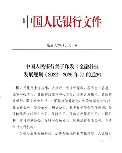 2022年伊始,央行印發(fā)《金融科技發(fā)展規(guī)劃(2022-2025年)》(以下簡稱《規(guī)劃》),這是繼2019年8月《金融科技(FinTech)發(fā)展規(guī)劃(2019—2021年)》后,央行出臺(tái)的第二輪金融科技發(fā)展規(guī)劃;作為我國金融科技發(fā)展的頂層設(shè)計(jì),《規(guī)劃》著重金融創(chuàng)新的科技驅(qū)動(dòng)和數(shù)據(jù)賦能。