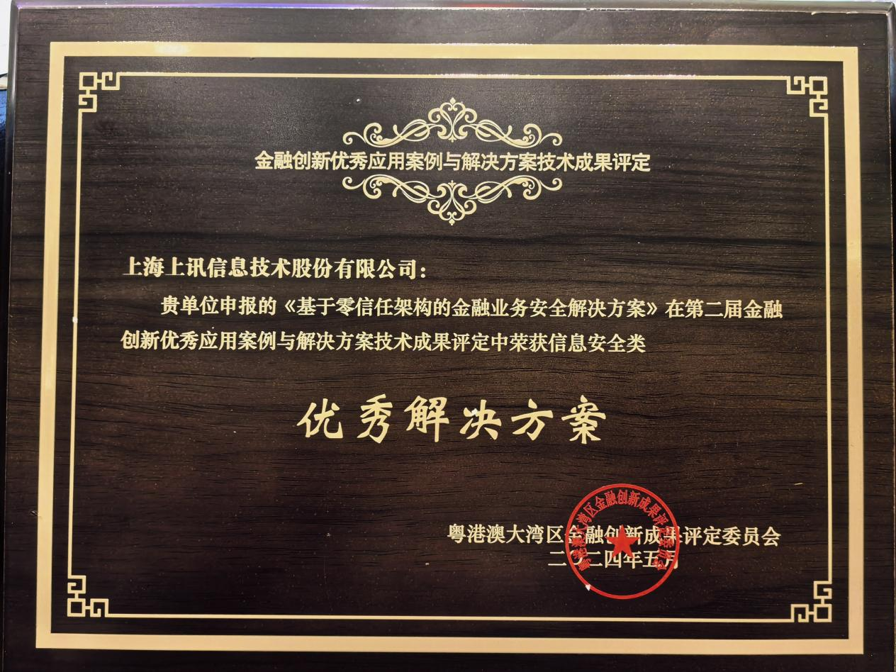 上訊信息“基于零信任架構(gòu)的金融業(yè)務(wù)安全解決方案”獲“優(yōu)秀解決方案”