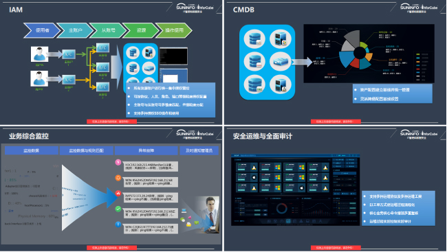 上訊信息自主品牌InforCube智能運維安全管理平臺(簡稱:SiCAP)是符合下一代堡壘機的理念的產品,它以ITSM2.0為基準,將行業(yè)內新興的DevSecOps、AIOps和BiModalIT等技術理念與信息安全結合而形成的平臺型產品。其用戶統(tǒng)一身份管理(IAM)、資產配置管理(CMDB)、業(yè)務資產綜合監(jiān)控、業(yè)務運維及安全綜合審計、IT流程管理(ITIL)及數據智能分析六大核心產品模塊,為客戶打造可視、可控、自動、安全的新一代智能IT整體管理平臺。