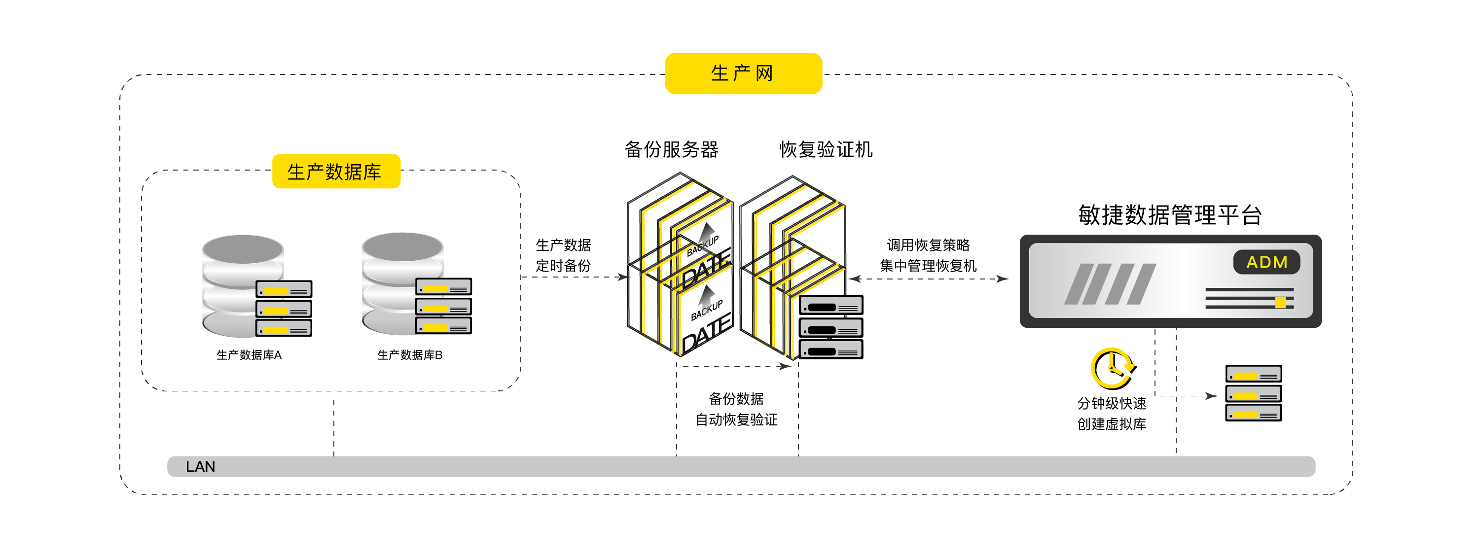 ADM對接用戶現(xiàn)有集中式備份系統(tǒng),實(shí)現(xiàn)恢復(fù)服務(wù)器、數(shù)據(jù)恢復(fù)策略、數(shù)據(jù)驗(yàn)證策略和存儲資源的集中管理,包括: