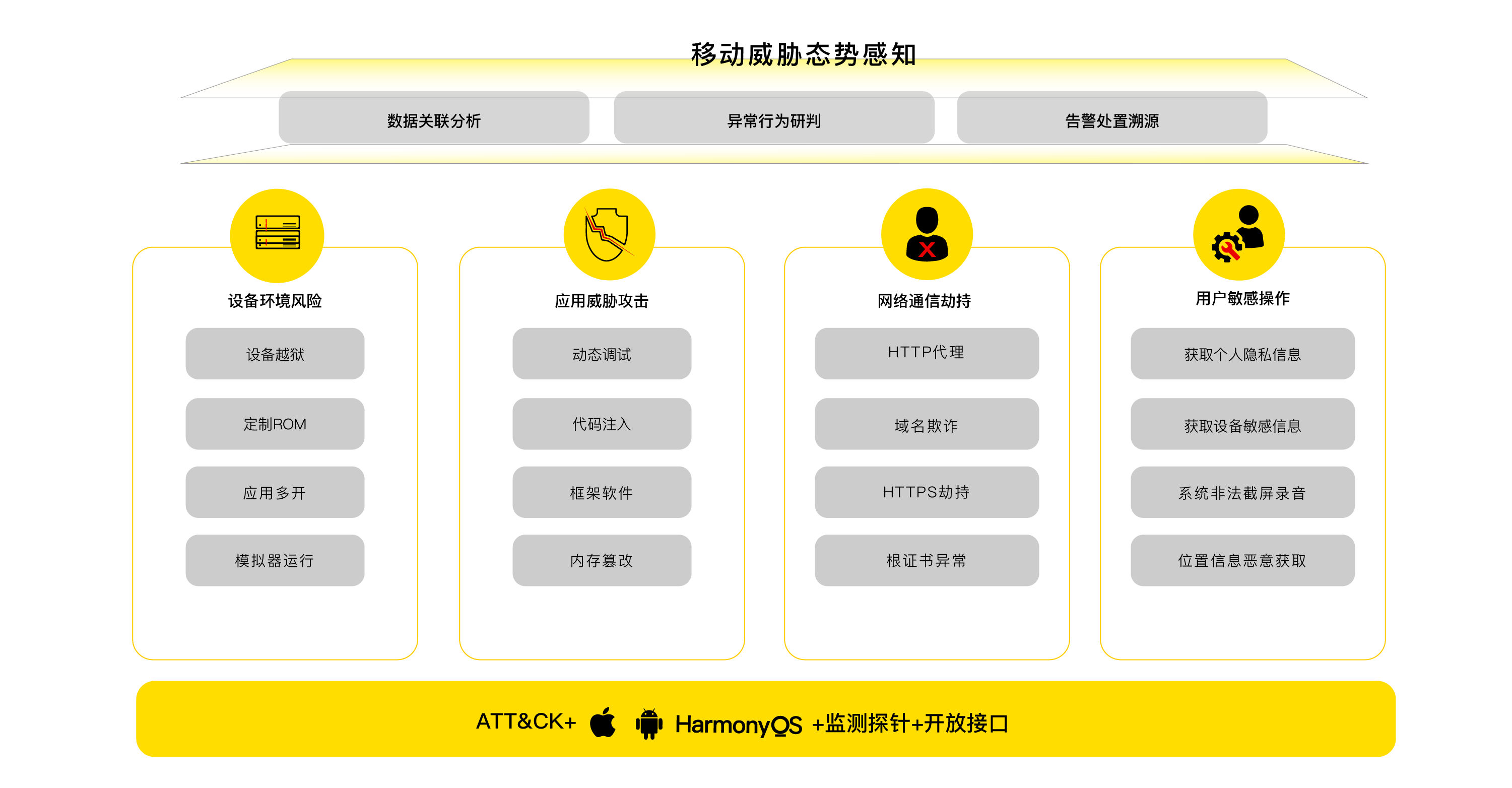 從用戶、設(shè)備、應(yīng)用和行為等多方面進(jìn)行持續(xù)安全監(jiān)控,實時采集運行環(huán)境、威脅攻擊、敏感操作和數(shù)據(jù)訪問等信息,經(jīng)過關(guān)聯(lián)統(tǒng)計分析、評估安全風(fēng)險、產(chǎn)生異常告警、觸發(fā)響應(yīng)保護(hù),并通過可視化的方式進(jìn)行多維度呈現(xiàn),幫助企業(yè)管理人員掌握移動業(yè)務(wù)安全的整體態(tài)勢。