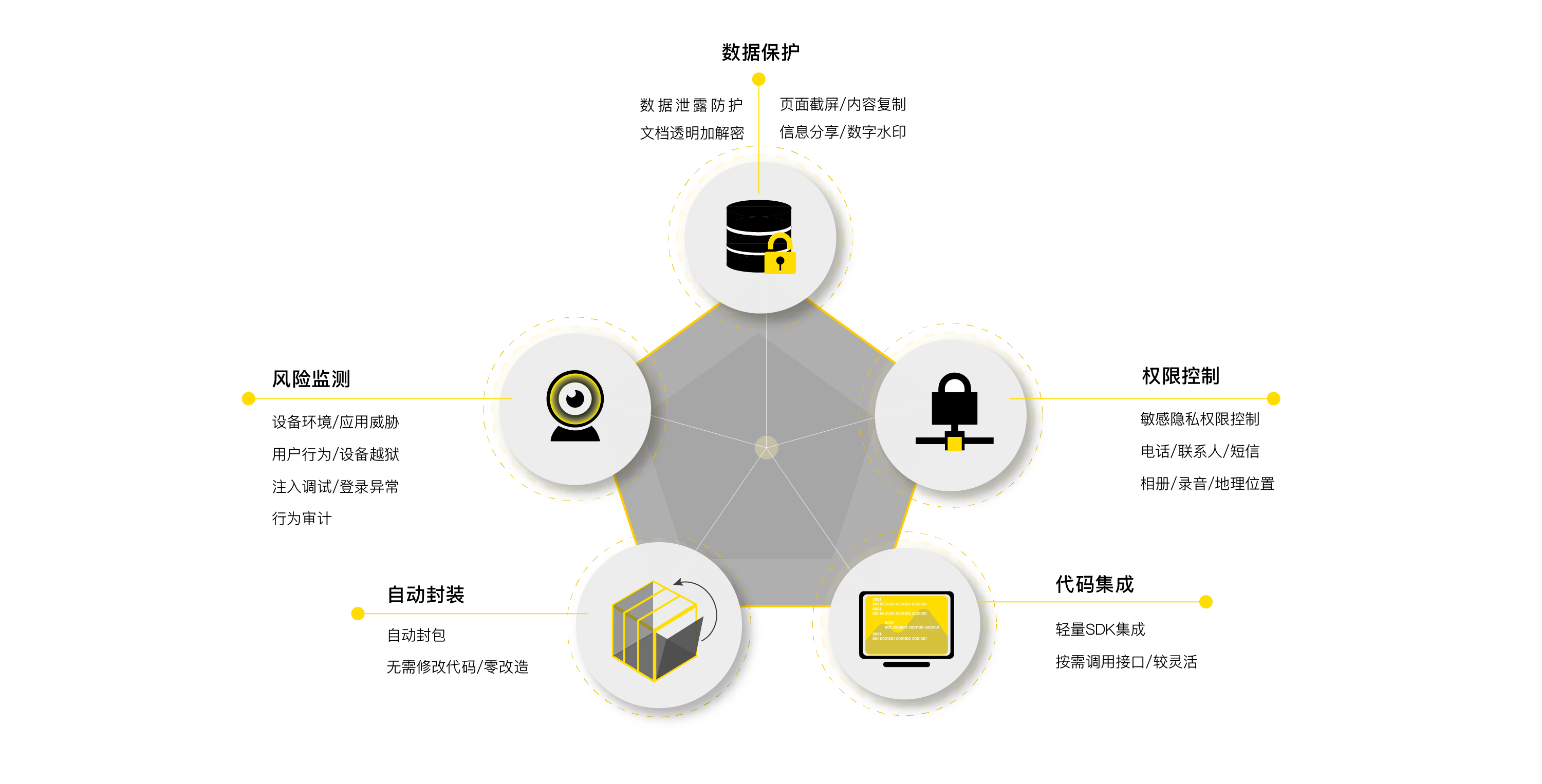通過應(yīng)用虛擬安全沙箱,實(shí)現(xiàn)應(yīng)用運(yùn)行環(huán)境隔離,提供敏感權(quán)限控制、個人隱私保護(hù)、數(shù)據(jù)泄漏防護(hù)、數(shù)據(jù)加密保護(hù)、異常運(yùn)行環(huán)境和威脅攻擊監(jiān)測,增強(qiáng)移動應(yīng)用業(yè)務(wù)數(shù)據(jù)和運(yùn)行時的安全性,保障移動業(yè)務(wù)安全。應(yīng)用安全沙箱,支持應(yīng)用自動打包和SDK開發(fā)集成兩種方式,同時提供安全鍵盤、數(shù)據(jù)加密和安全監(jiān)測等多種安全賦能SDK。
