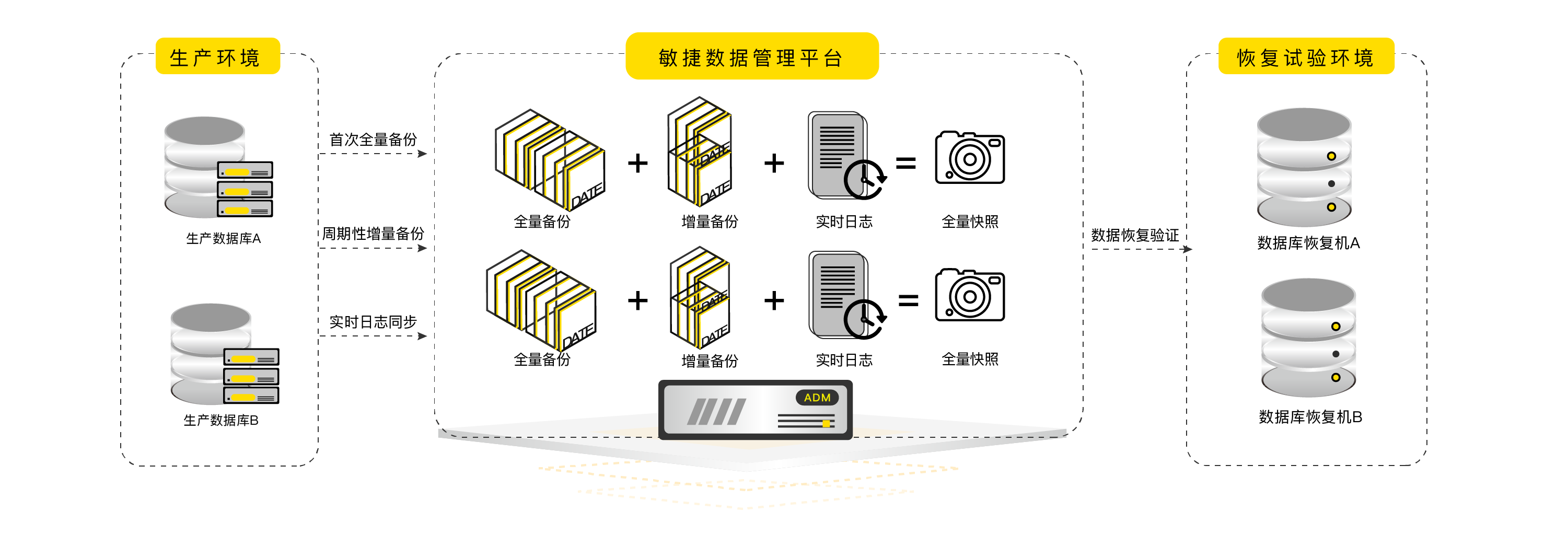 數(shù)據(jù)備份管理是ADM功能模塊之一,主要用于數(shù)據(jù)的備份與恢復(fù)。包括對(duì)主流操作系統(tǒng)、主流數(shù)據(jù)庫、虛擬機(jī)、國產(chǎn)數(shù)據(jù)庫、容器等的備份恢復(fù)以及帶庫的歸檔。支持備份傳輸過程壓縮加密處理,緩解網(wǎng)絡(luò)傳輸?shù)膲毫?、確保備份數(shù)據(jù)的安全。通過創(chuàng)建虛擬副本實(shí)現(xiàn)了本機(jī)、異機(jī)的數(shù)據(jù)掛載恢復(fù),既可以實(shí)現(xiàn)任意時(shí)間點(diǎn)的恢復(fù)粒度、分鐘級(jí)的恢復(fù)時(shí)間,也可以實(shí)現(xiàn)恢復(fù)后的有效性驗(yàn)證,滿足各類生產(chǎn)數(shù)據(jù)源的備份需求。