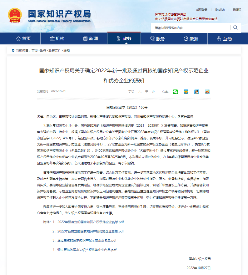 國(guó)家知識(shí)產(chǎn)權(quán)優(yōu)勢(shì)企業(yè),是指在重點(diǎn)發(fā)展產(chǎn)業(yè)領(lǐng)域,能承接重大、重點(diǎn)產(chǎn)業(yè)發(fā)展項(xiàng)目,具備自主知識(shí)產(chǎn)權(quán)能力,積極開展知識(shí)產(chǎn)權(quán)保護(hù)和運(yùn)用,建立全面知識(shí)產(chǎn)權(quán)管理制度和機(jī)制,具有知識(shí)產(chǎn)權(quán)綜合實(shí)力的企業(yè)。該項(xiàng)評(píng)選每三年發(fā)布一次,是我國(guó)知識(shí)產(chǎn)權(quán)強(qiáng)國(guó)建設(shè)示范工作的重要組成部分,也是中國(guó)知識(shí)產(chǎn)權(quán)管理領(lǐng)域的最高榮譽(yù)之一。