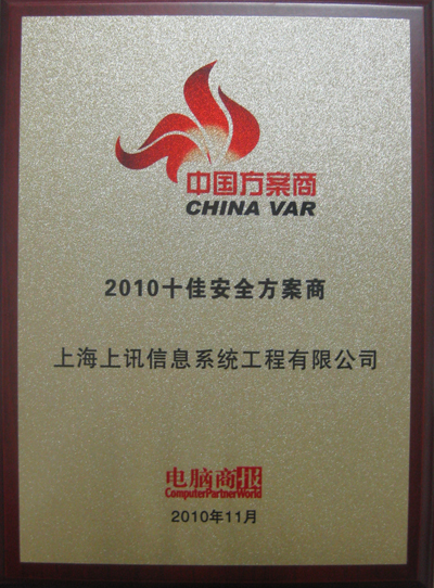 《電腦商報》歷時三個多月的2010首屆中國方案商峰會暨TOP方案商調(diào)研評選活動塵埃落定。11月26日,本屆活動頒獎酒會在北京國際飯店會議中心隆重舉行,300多位優(yōu)秀廠商及渠道合作伙伴代表應(yīng)邀出席了本次會議,上訊信息榮獲“十佳安全方案商”獎項。