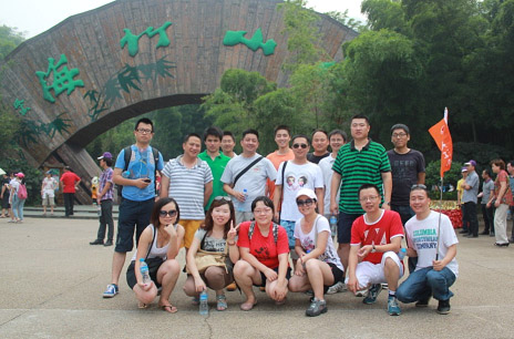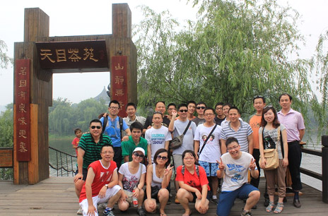 在結(jié)束了緊張嚴(yán)肅的會(huì)議后,東一大區(qū)一行人登上了前往天目湖景區(qū)的大巴,面對(duì)即將展開的Teambuilding之旅,每個(gè)人都精神抖擻,斗志昂揚(yáng),想到要與大自然做親密接觸,興奮的感覺溢滿心頭。該景區(qū)將自然和人文景觀相結(jié)合:湖里山、鄉(xiāng)村田園島、海洋世界、繡球島——品味天目湖"茶香水甜"之絕佳處。來(lái)到南山竹海,南山壽翁正笑咪咪的歡迎大家的到來(lái)。這里的生態(tài)環(huán)境宜人,山水相映成趣,風(fēng)景如詩(shī)如畫,方圓幾十里無(wú)一絲污染,是蘇浙皖邊界最佳生態(tài)圈,有是雞鳴三省之稱。在這個(gè)清涼的周末,參觀了萬(wàn)畝竹海、密林靜湖、小鳥天堂、走古官道、拜壽堂、吳越第一峰,既感受到了古樸、原始、自然的意境,感受到了旅途中的新奇和快樂(lè),也品嘗到了當(dāng)?shù)剞r(nóng)家的佳肴美味。