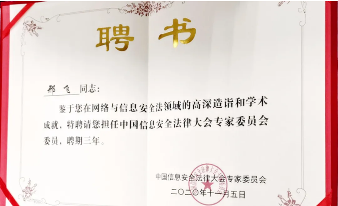 2020年11月5日,第十一屆中國(guó)信息安全法律大會(huì)在北京順利召開。基于上訊信息創(chuàng)始人邢飛先生在網(wǎng)絡(luò)與信息安全法領(lǐng)域的高深造詣和學(xué)術(shù)成就,受聘為中國(guó)信息安全法律大會(huì)專家委員會(huì)委員。