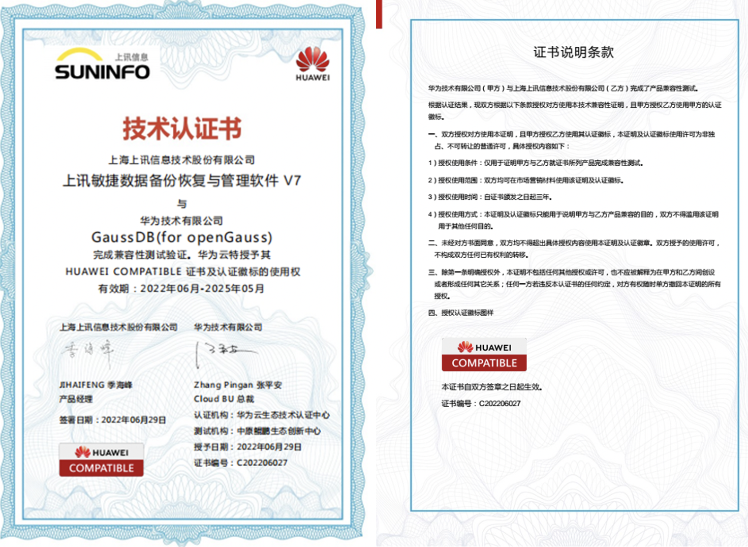 上訊敏捷數(shù)據(jù)備份恢復(fù)與管理軟件V7與華為技術(shù)有限公司GaussDB(for openGauss)完成兼容性測試驗證