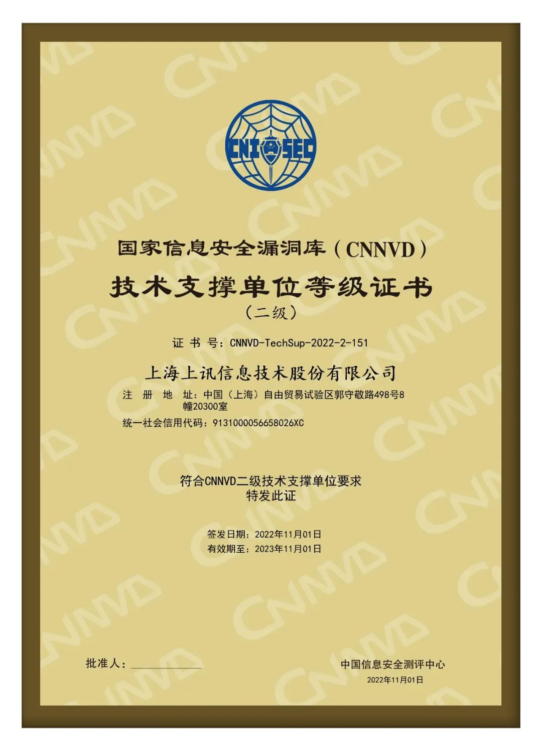 上訊信息于2021年開始逐步加大對安服務業(yè)務的投入,當年由上海安全咨詢部牽頭負責正式開始參加國家信息安全漏洞庫相關工作,期間發(fā)現(xiàn)和收集了大量中高危漏洞并持續(xù)提交給CNNVD。公司首年加入支撐單位,就和華為、360安全等公司一起榮獲“2021年度新秀獎”。