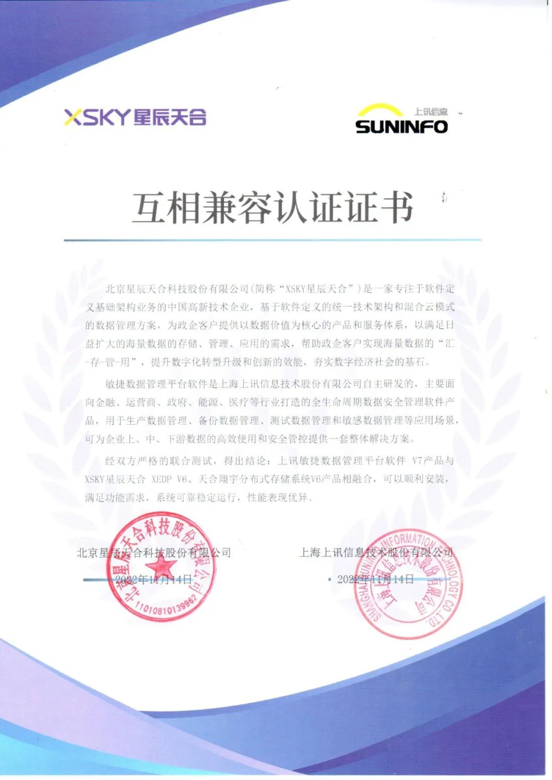 上訊信息敏捷數(shù)據(jù)管理平臺 (ADM) 與XSKY星辰天合存儲系統(tǒng)互認(rèn)證明