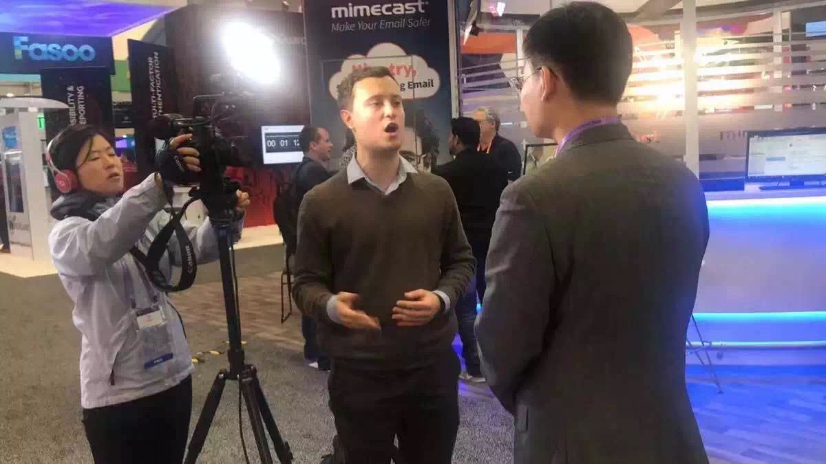 “您好,歡迎來到Suninfo,我們將為您提供對(duì)產(chǎn)品的介紹和演示……”2019年RSA大會(huì)的展區(qū)里,Suninfo的兩位總監(jiān)級(jí)技術(shù)專家正用流利的英文為眾多參觀者講解公司的產(chǎn)品,展臺(tái)的電視上循環(huán)播放著ADM的介紹短片,里面抑揚(yáng)頓挫的英式口音配音來自Suninfo北方區(qū)技術(shù)總監(jiān)劉鍇。