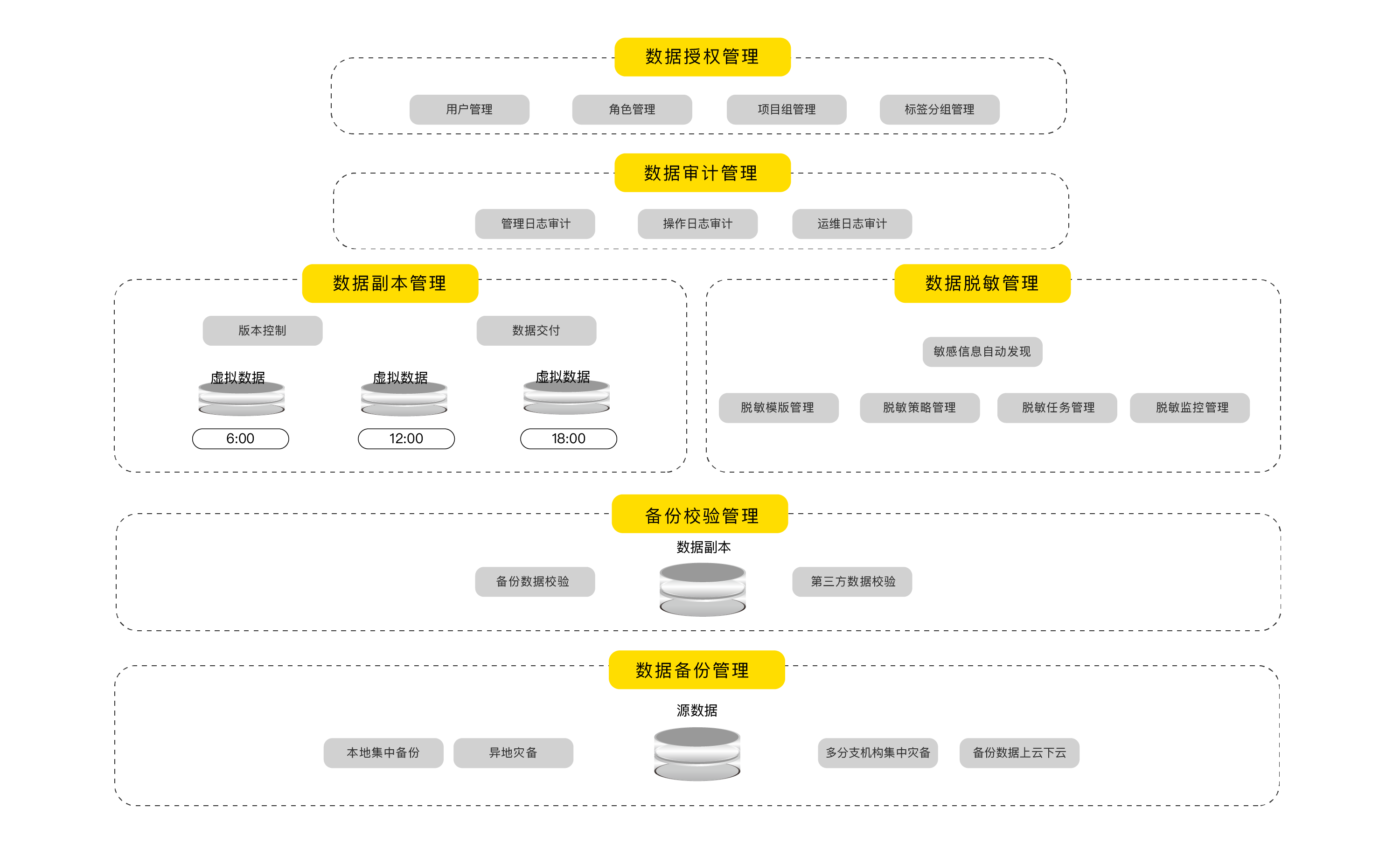 敏捷數(shù)據管理平臺(Agile Data Management,簡稱 ADM)是采用數(shù)據庫虛擬化等核心技術面向數(shù)據全生命周期的數(shù)據安全管理產品,主要由數(shù)據備份管理、備份校驗管理、數(shù)據副本管理、數(shù)據脫敏管理四大功能模塊組成,用于解決金融、運營商、能源、醫(yī)療、政府等行業(yè)的數(shù)據備份與恢復、備份數(shù)據自動化恢復與有效性驗證、靜態(tài)數(shù)據脫敏、測試數(shù)據多副本快速交付以及多場景融合下的實際問題,確保在數(shù)據安全使用的前提下,提高數(shù)據使用效率、降低數(shù)據存儲成本、減少數(shù)據泄露風險,為企業(yè)上、中、下游數(shù)據的高效使用提供一套綜合數(shù)據安全治理解決方案。
