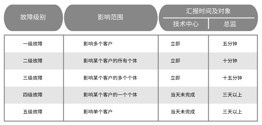 故障級(jí)別定義及匯報(bào)時(shí)間
