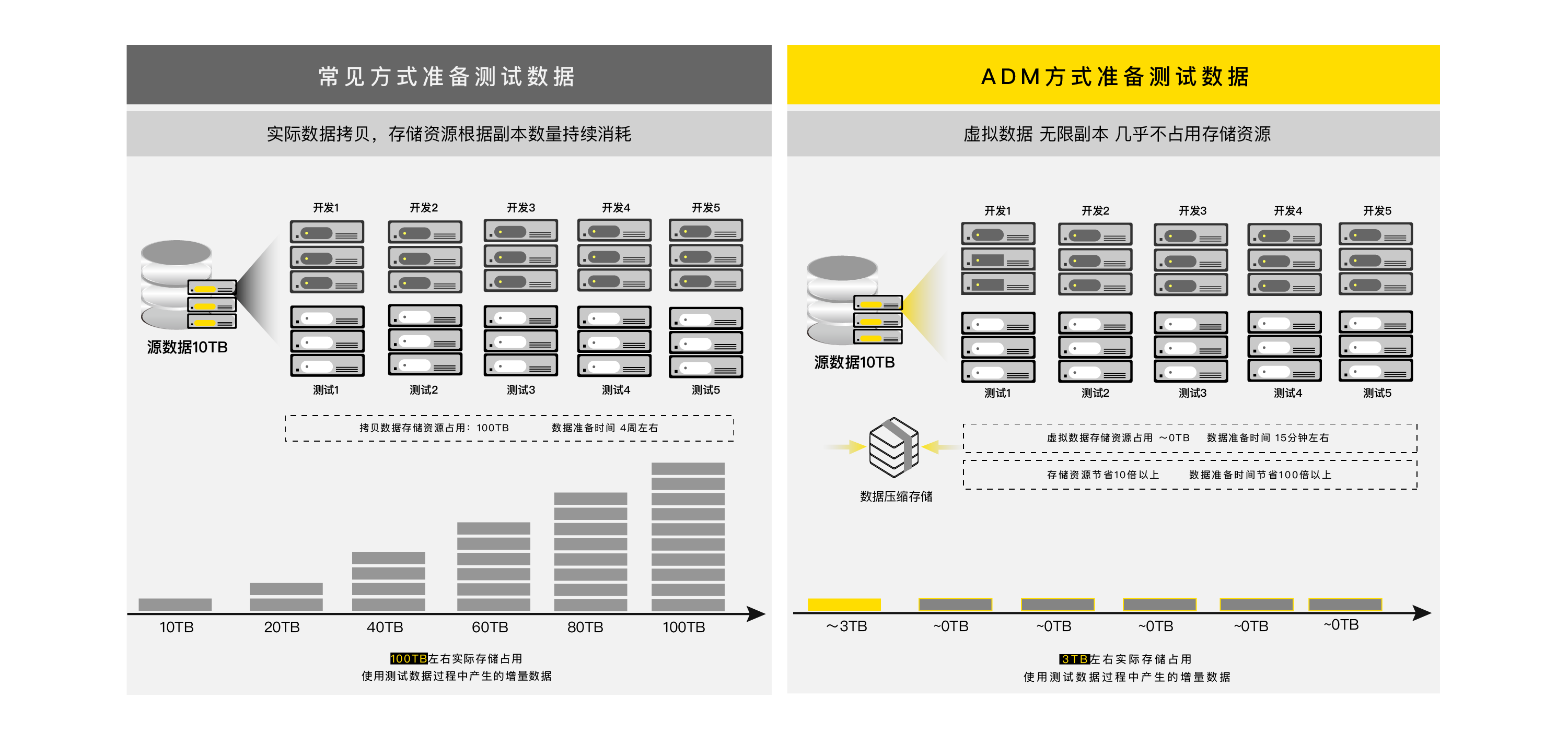 (1)ADM內(nèi)置獨(dú)有的高效壓縮存儲(chǔ)池,壓縮比高達(dá)3:1,存儲(chǔ)即壓縮,顯著降低了基礎(chǔ)數(shù)據(jù)源獲取的存儲(chǔ)成本與持續(xù)增長的副本數(shù)據(jù)存儲(chǔ)成本;
